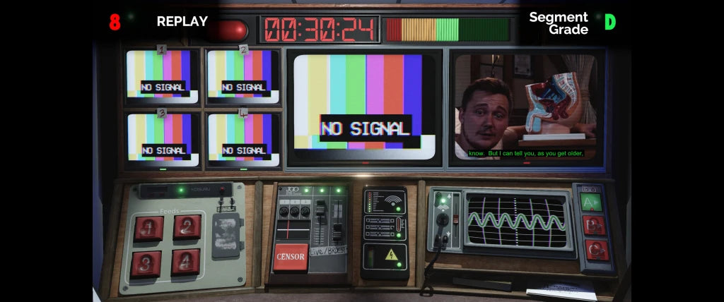 Not For Broadcast là một tựa game mô phỏng – FMV (full motion video) cực kỳ độc đáo, nơi bạn vào vai kỹ thuật viên truyền hình phải kiểm soát toàn bộ chương trình trực tiếp. Trong khi cả đất nước đang rơi vào hỗn loạn chính trị, bạn chính là người quyết định công chúng sẽ được thấy điều gì trên sóng truyền hình.